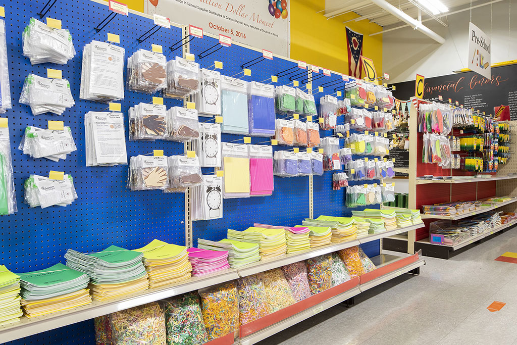 Right now, we work with 143 schools in the region, including childcare centers and pre-K to twelfth grade. Teachers from schools where 60 percent or more of the students participate in the National School Lunch Program can come to our store in Dayton once a semester and collect classroom materials. It’s stocked with a wide range of supplies, from everyday essentials like notebooks to larger necessities like backpacks; we also provide cleaning products, bulletin board decorations, and books. Everything is new and organized, so it’s a great shopping experience. And on each trip, teachers can take up to $2,000 worth of items.